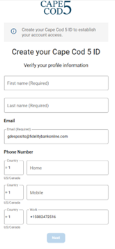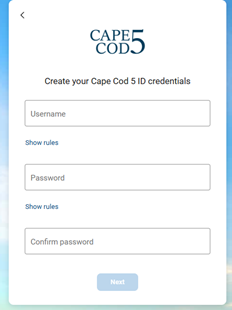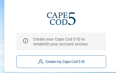 Enter the Company ID and Login ID. When entered correctly, you will get this message and click Create my Cape Cod 5 ID.
